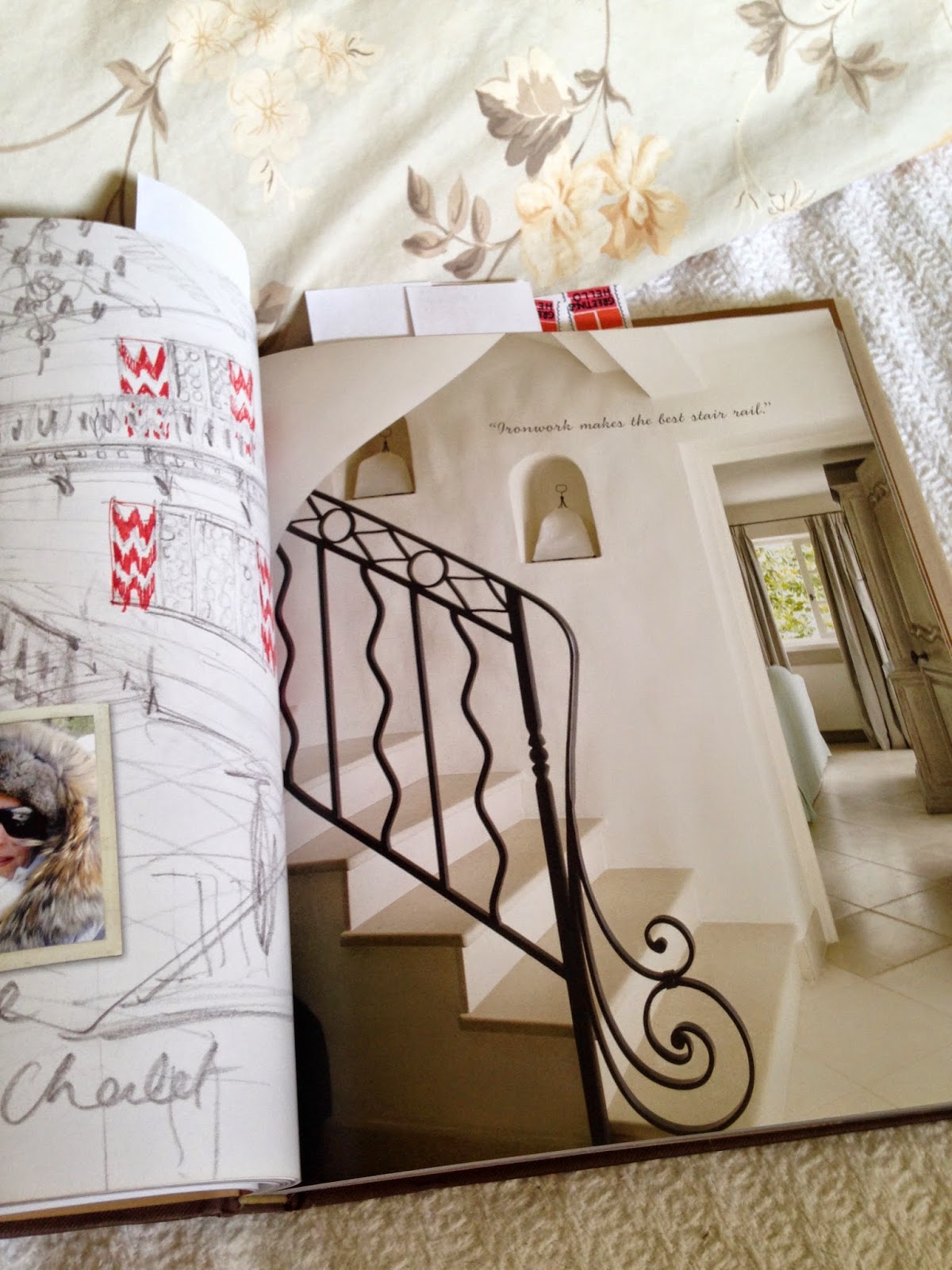 Or books. But in this case I snuggled up with Nicky Haslam and read his words and his clippings and slid my finger over the thicker end of the post-it note marking pages. Mr. Haslam likes iron railings. I sometimes like iron railings, like the one in the Musee Rodin. But I very much do not like the iron railing in my house.